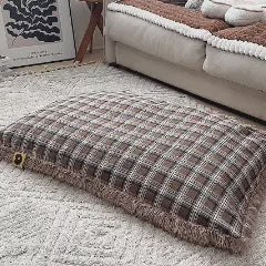 Estera de perro calmante de peluche extraíble de doble cara a cuadros clásico